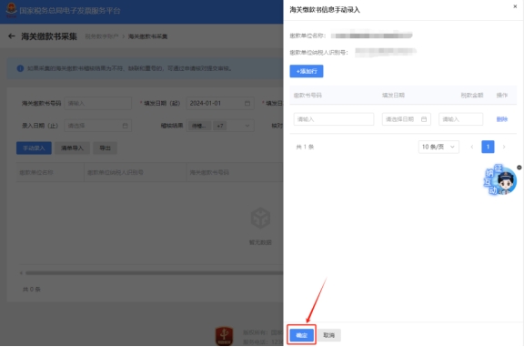 您好,請(qǐng)點(diǎn)擊【我要辦稅】—【稅務(wù)數(shù)字賬戶】—【海關(guān)繳款書(shū)采集】,點(diǎn)擊【手動(dòng)錄入】錄入海關(guān)繳款書(shū)信息,點(diǎn)擊“確定”成功后,稍后可在查詢界面根據(jù)需要輸入或選擇相關(guān)查詢條件,然后點(diǎn)擊“查詢”按鈕,在結(jié)果展示區(qū)顯示符合查詢條件的海關(guān)繳款書(shū)。