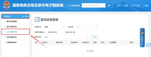 當(dāng)紅字信息確認(rèn)單狀態(tài)為購(gòu)銷(xiāo)雙方已確認(rèn)狀態(tài)或無(wú)需確認(rèn)狀態(tài)時(shí),納稅人可依次進(jìn)入【我要辦稅】—【開(kāi)票業(yè)務(wù)】—【紅字發(fā)票開(kāi)具】頁(yè)面,在常用功能模塊中點(diǎn)擊“紅字發(fā)票開(kāi)具”,錄入查詢(xún)條件查詢(xún)到此前開(kāi)具的紅字信息確認(rèn)單,點(diǎn)擊右側(cè)的“去開(kāi)票”,進(jìn)入紅字發(fā)票開(kāi)具頁(yè)面,之后正常開(kāi)具紅字發(fā)票即可。