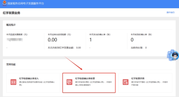 三、在常用功能模塊中點(diǎn)擊“紅字發(fā)票開(kāi)具”。