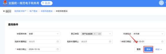 二、申報(bào)信息查詢進(jìn)入功能頁(yè)面,輸入查詢條件點(diǎn)擊【查詢】。