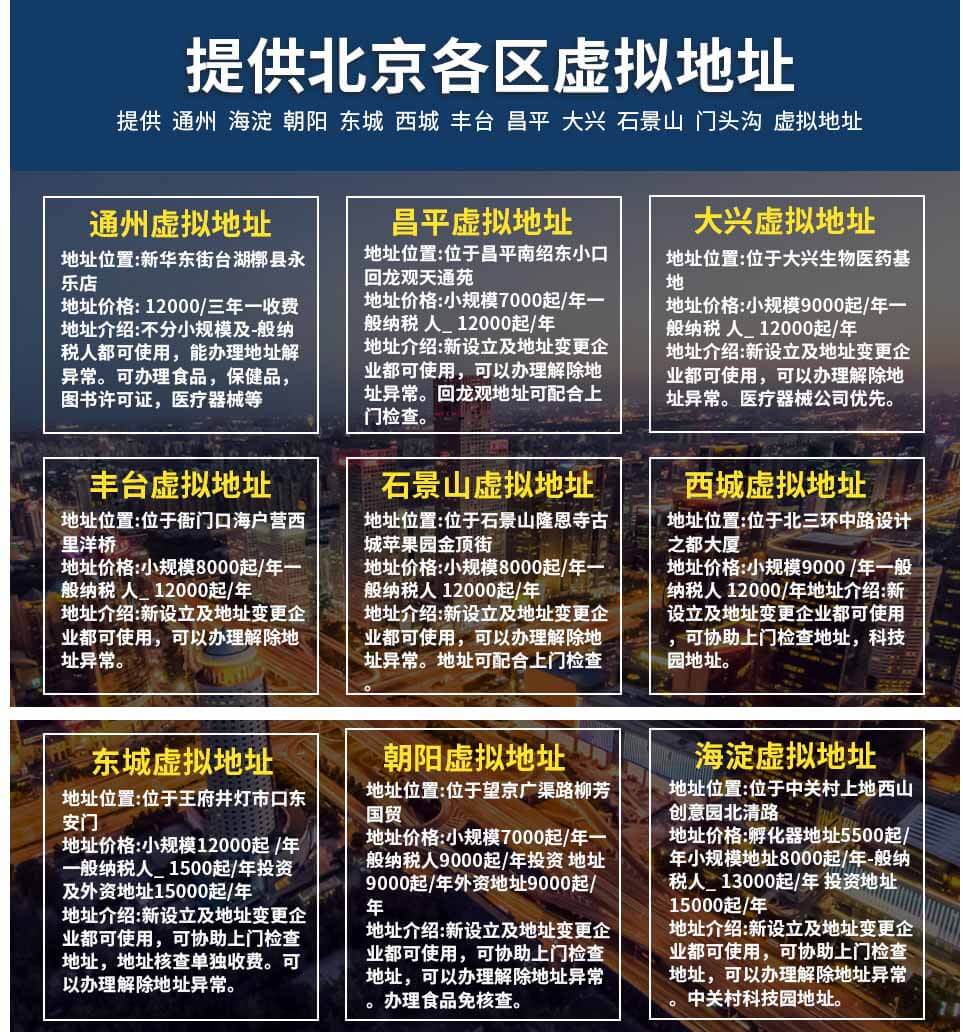 什,北京注冊公司免費地址平谷,么是虛擬注冊地址地址(集中工作區(qū)或,在北京注冊公司無地址怎么辦,公司孵化器)?通俗來講“虛擬注,北京出租公司注冊地址,冊地址”就是你不需求實際租賃一間工作室,北京注冊公司地址費用,來注冊公司、而由工商局、稅完結(jié)工作,北京公司代辦公司注冊地址,作局準(zhǔn)許的“公司孵化器”供給給,北京注冊公司有哪些地址,你一個房間號用來公司注冊、其作用只是用,在北京注冊分公司需要實體地址,來工商注冊,處理營業(yè)執(zhí)照用的,但是,北京無地址公司注冊多少費用,你不可以以來注冊地工作的一種服,北京公司注冊地址收費,務(wù)。