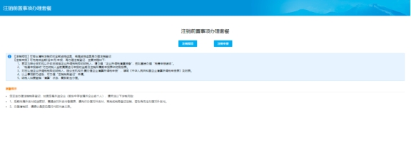 第二步:點(diǎn)擊【注銷預(yù)檢】按鈕可對(duì)未辦結(jié)事項(xiàng)進(jìn)行展示,處理完未辦結(jié)事項(xiàng)后,再辦理注銷登記。