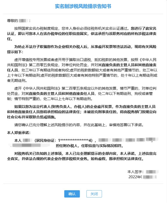 七、實(shí)名制涉稅風(fēng)險(xiǎn)提示告知書頁(yè)面。